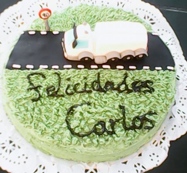 Esta vez era el cumpleaños de nuestro amigo Carlos y su mujer, Mónica, me encargó una tarta con un camión, porque él es camionero. No sabía muy bien cómo la quería y yo le pedí que confiara en mí, que no la decepcionaría...y así fue ;)